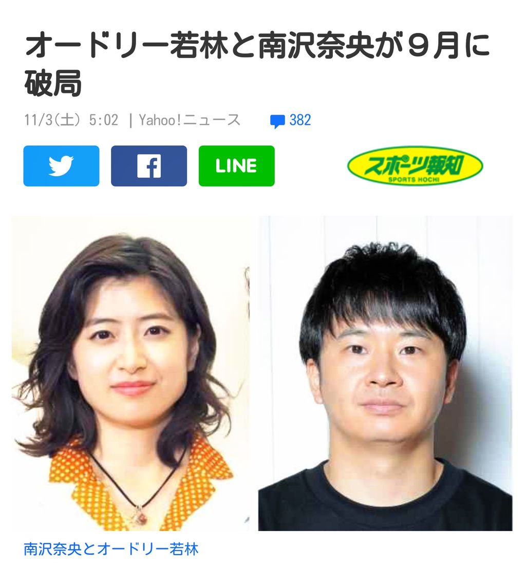 @Japan_kenpou若林正恭&南沢奈央 9月に破局 | 2018/11/3(土) - Yahoo!ニュース https://t.co/qKgoy2qU3l @YahooNewsTopics