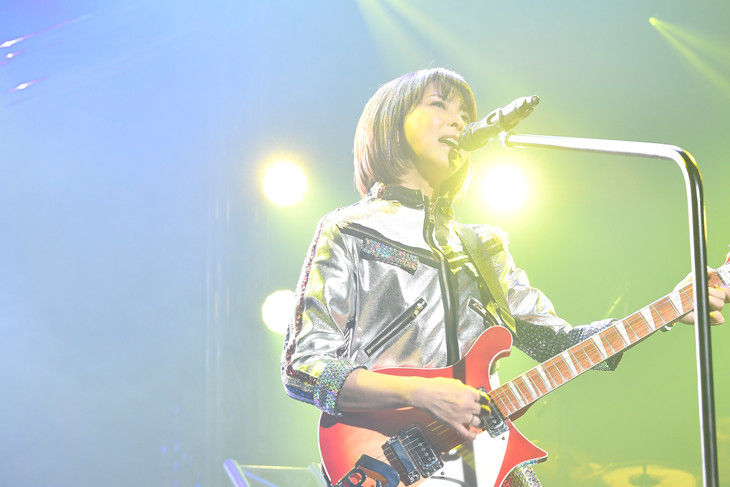 森高の代名詞である“ミニスカ”は今回も健在。ツアー中の4月11日に50歳の誕生日を迎えるとは思えないほど惜しみなく美脚を披露し、派手でキラキラな衣装も着こなしてイキイキとパフォーマンスした。