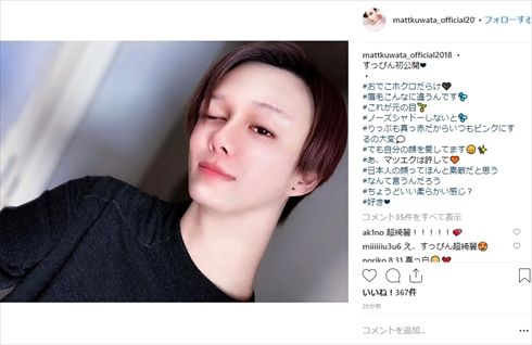 すっぴん姿のMattさん(画像はMatt Instagramから)