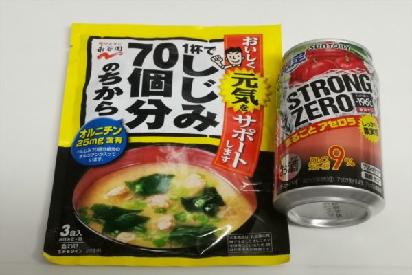 そこで記者(私)は考えた。飲んでいるストロングゼロを使ってみそ汁を使えば、湯を沸かすことなく、シメと飲みを同時に行えてコスパがいいのではないだろうか?