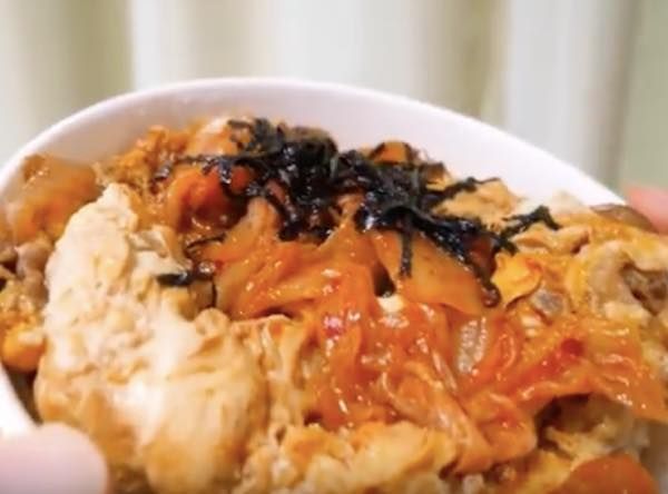 牛丼とキムチを卵でとじたという一品。もうすでに美味しいのは確定・・・!