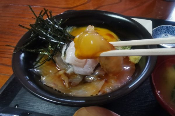 味変に卵黄をつけて食べると、究極に贅沢な卵かけごはんに変化。コレで1,350円はお得すぎて感動してしまうほど。あとで調べると、ヒラメは青森県の県魚にも指定されているそうだ。どうりでウマいわけだ…。