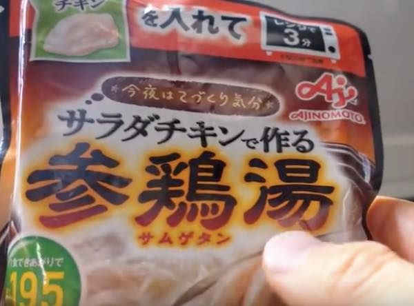 そして次はサラダチキンで作る参鶏湯(サムゲタン)。サラダチキンをほぐすのは少々手間なのでほぐし済みサラダチキンを購入しよう。