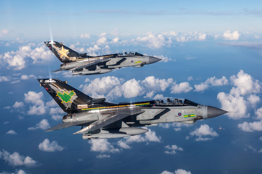 懐かしの迷彩パターンのトーネードを操縦し、このスペシャルマーキング機の編隊を率いたマーラム空軍基地司令のイアン・タウンセンド大佐は「この『テイルアート』編隊を率いることができたのは、非常に誇らしいことと感じています。この記念撮影は、40年以上にも及ぶ我々空軍におけるトーネードの歴史に別れを告げるイベントの始まりとなるものです。今回の任務が成功裏に終わったのは、軍全体のサポートもさることながら、1982年に最初のトーネードが到着して以来、ずっと支え続けてきたマーラム基地の人々の努力の賜物だと思います」と語っています。